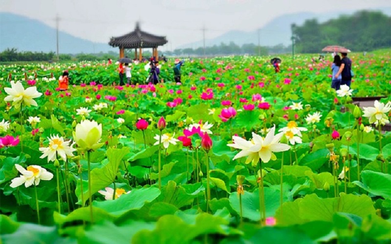 Lễ hội Hoa Sen trắng Muan: là nơi trồng sen trắng lớn nhất Châu Á, là loài hoa trắng cực hiếm và không phải nơi nào cũng có. Hãy thử tưởng tượng một không khí ồn ào náo nhiệt, giữa mùa hè oi bức mà lạc vào một chốn thần tiên với những bông sen trắng dịu dàng. Tại đây bạn có thể dùng những con thuyền đến giữa hồ sen, chụp lại những bộ ảnh lưu lại khoảnh khắc này. Đây là một nơi lý tưởng để bạn tìm hiểu về văn hoá của xứ sở kim chi.